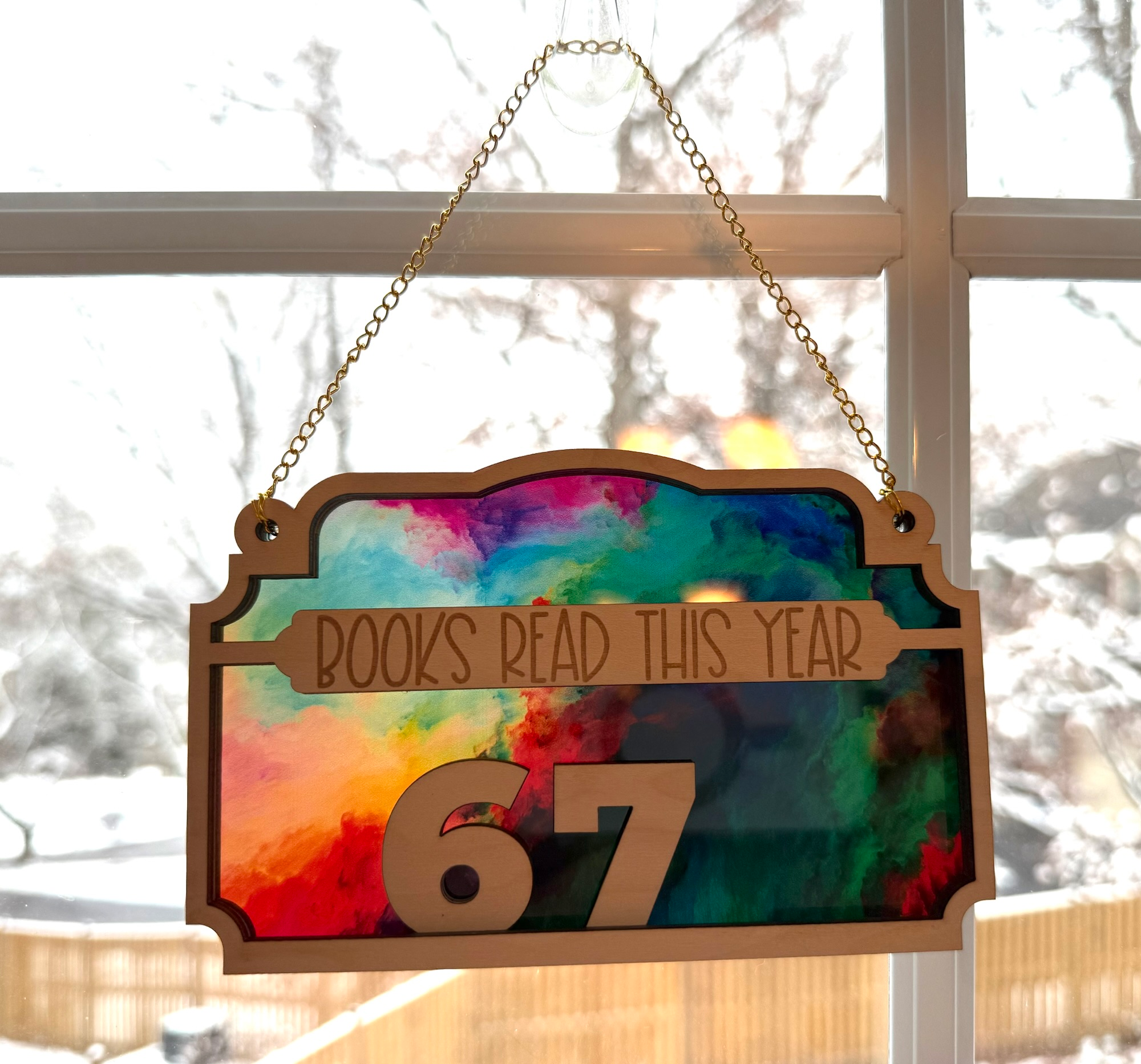 This fun tracker can be hung or stood on a bookshelf. It measures 5.9 inches wide and 3.8 inches tall. It comes with three sets of numbers from 1-9 and two 0’s.