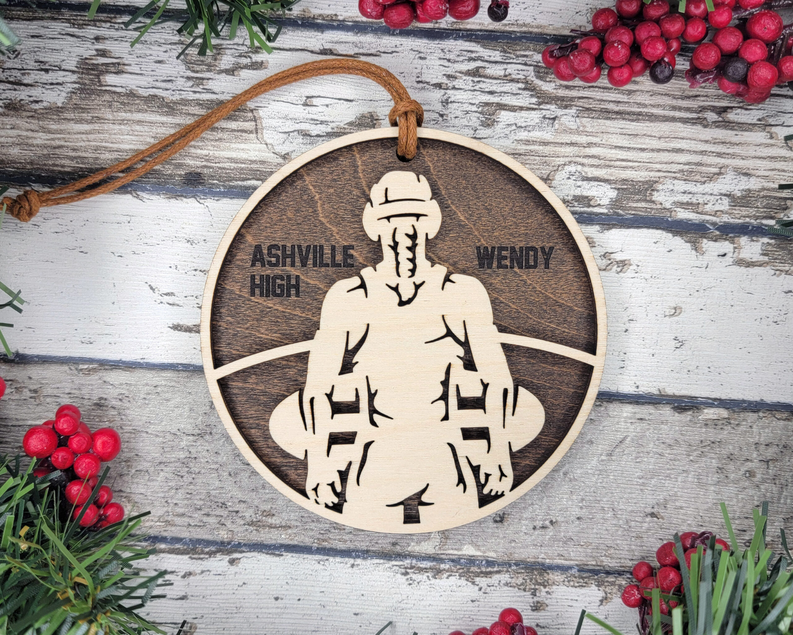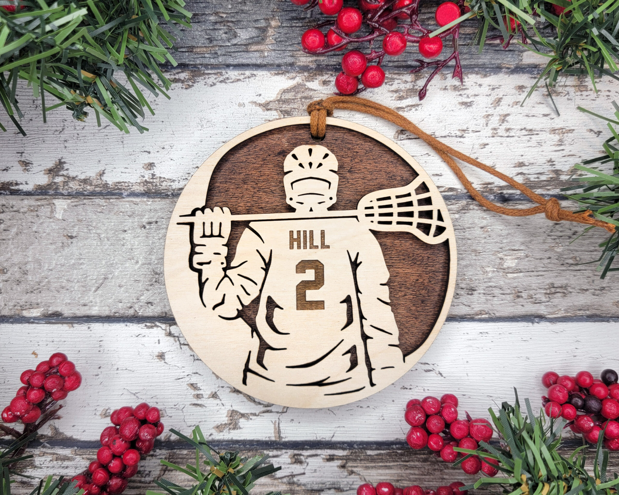 The football and flag football ornament or magnet measures 4″ tall, the other sports measure 3.5″ wide.